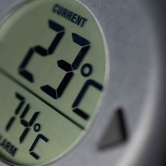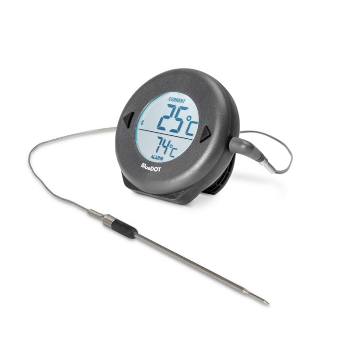 Basta regolare la temperatura desiderata usando i pulsanti, inserire la sonda nel cibo, La dote emette un segnale acustico e il display lampeggia quando viene raggiunta la temperatura .
